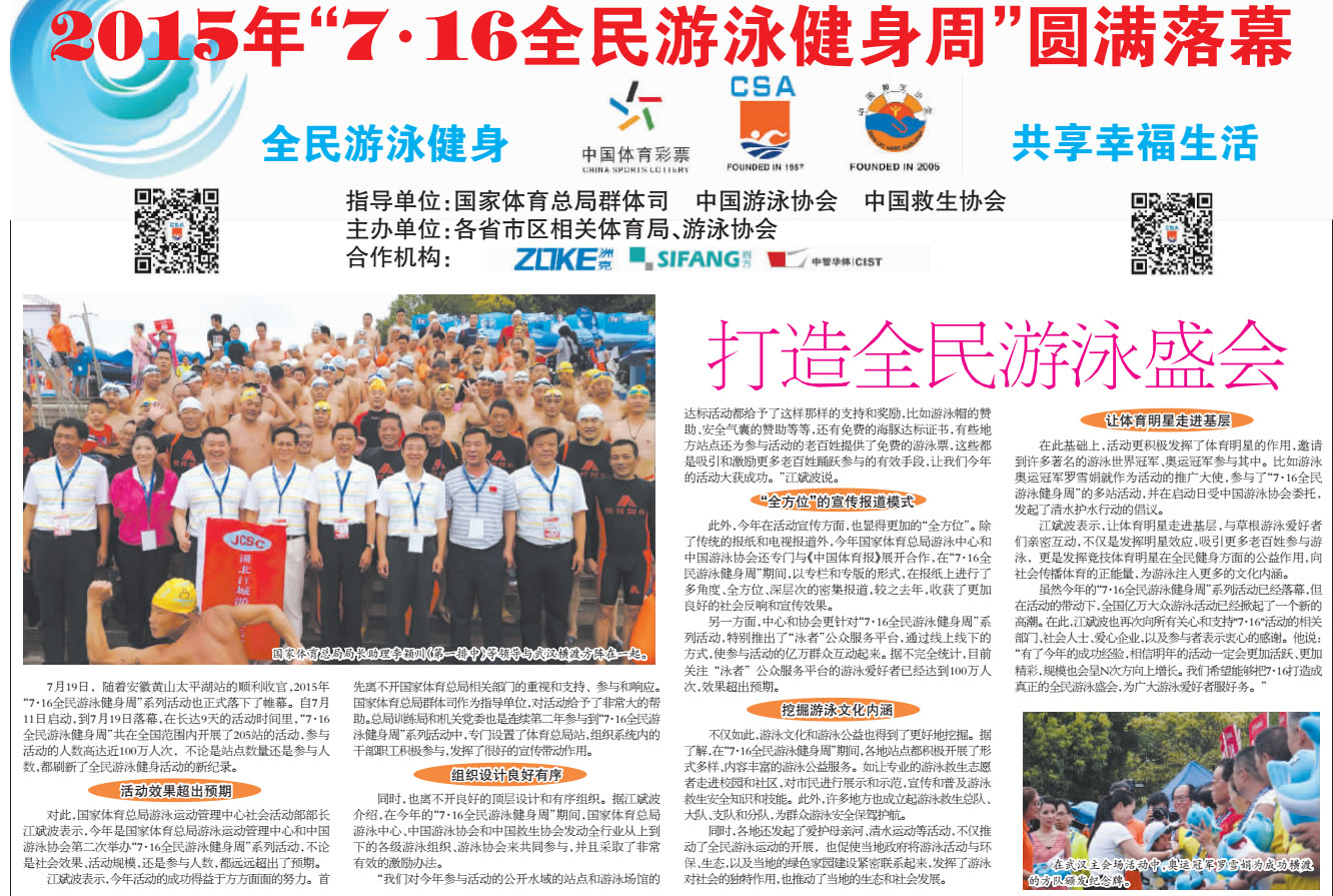 打造游泳盛会,2015年“7.16全民游泳健身周”圆满落幕